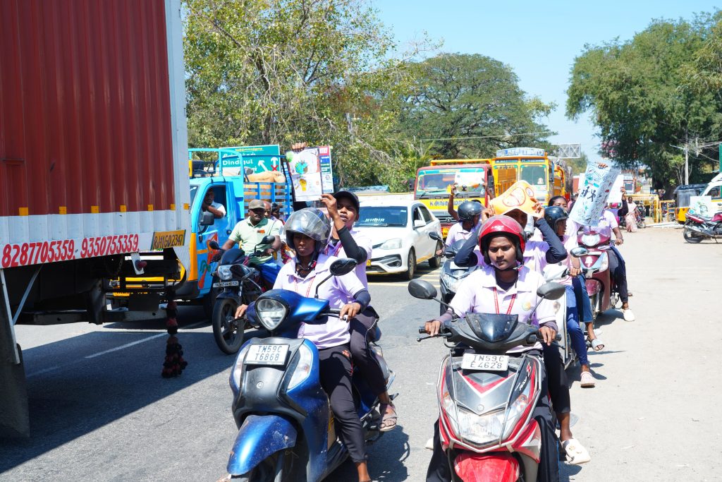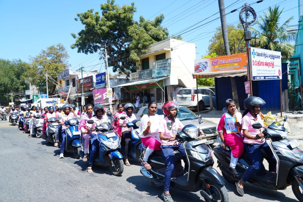 On 19.02.2026 and 20.02.2026, the rally commenced from Samayanallur and proceeded towards Paravai, with students riding in disciplined formation while raising slogans on women’s safety and responsible road usage. Participants carried placards with traffic symbols and awareness messages, encouraging the public to follow road safety rules and ensure a safe environment for women. The programme was graced by the College Chairman, Dr. P. Ashok Kumar, the Vice Chairman, Er. A. Shakti Pranesh, the Pro-Chairman, Dr. A. Saravana Pradeep Kumar, the Principal, Dr. Uma Baskar, the Dean of Academics, Smt. K. Chendur Priyadharshini, and the club coordinators, whose support made the event successful.