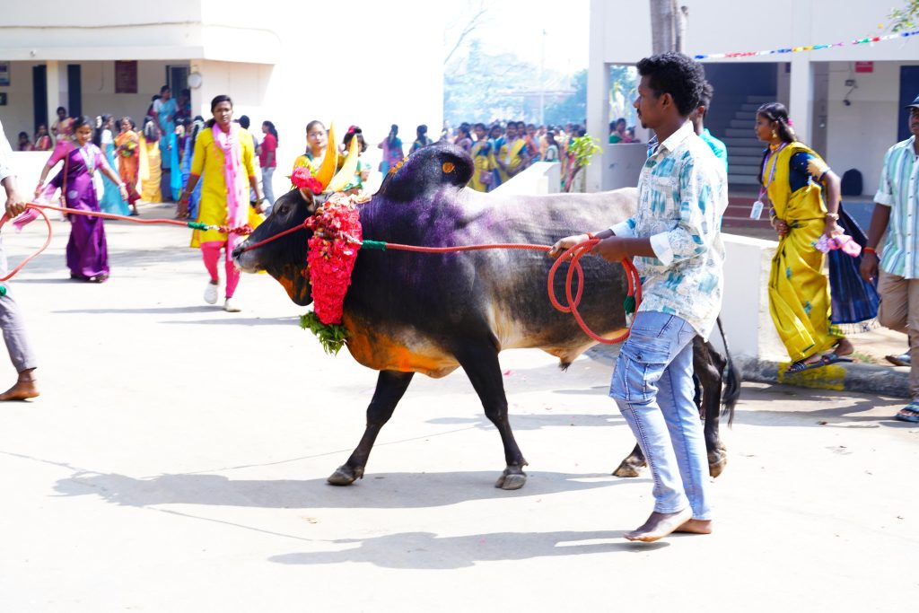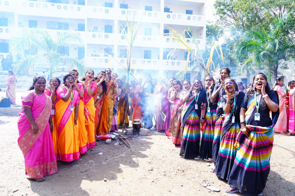The Pongal celebration was conducted in our institution on 12/01/2026 with great joy and enthusiasm. The campus was decorated with kolam, sugarcane, and traditional pots to create a festive atmosphere. Students and staff participated in the celebration wearing traditional dress. Pongal was prepared in the traditional way, and everyone happily shouted “Pongalo Pongal”. Traditional dances such as Karagam, Poikkal Kuthirai, and folk dance were performed, which made the programme more colourful and lively. Cultural events and speeches about the importance of Pongal were also conducted. The Principal appreciated the participants and spoke about preserving our culture. The celebration ended with the distribution of sweet pongal, and the programme was joyful and memorable for all